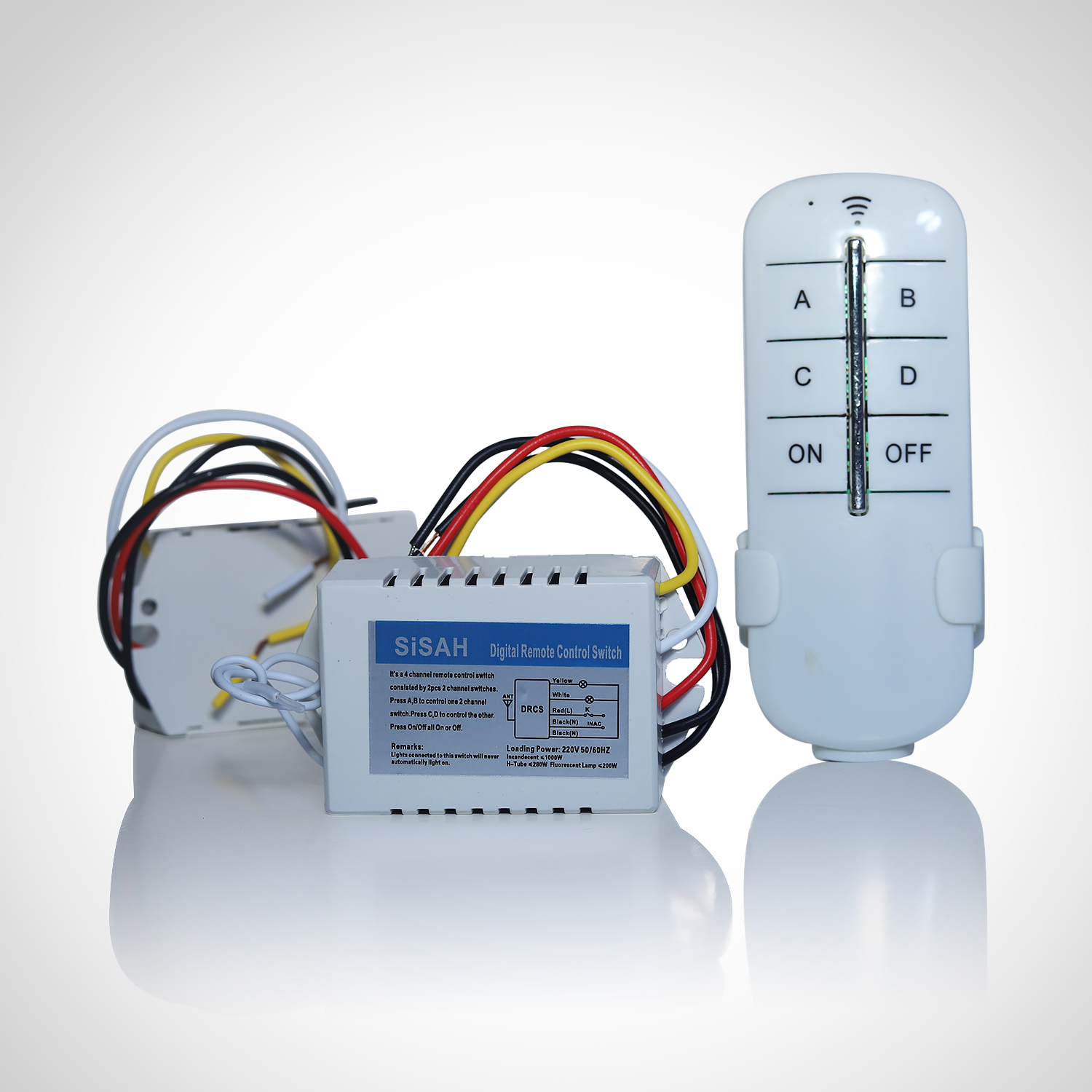 Fast and easy installation, not obstructed by walls, capable of connecting any loads. Remote controller and switch can be used simultaneously for ease and flexibility.