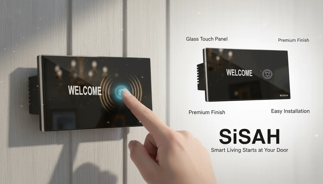 Upgrade your home's entrance with the SiSAH Digital Glass Touch Bell Switch. This modern, sleek black panel replaces your traditional doorbell push bu…